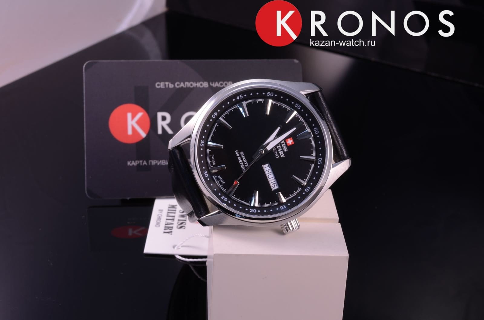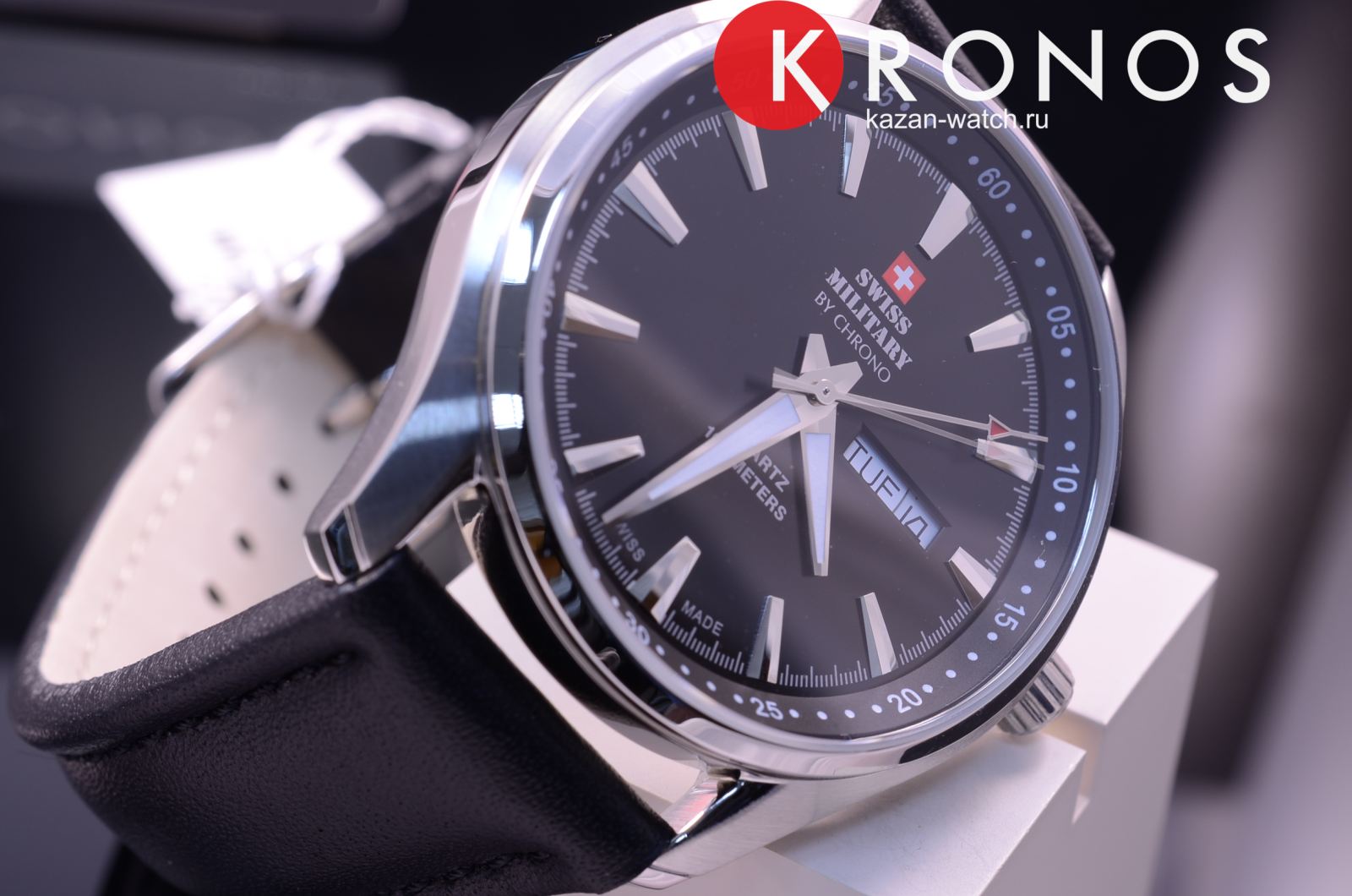 Мужские кварцевые часы Swiss Military by Chrono — это сочетание классического дизайна и спортивного стиля. Корпус диаметром 44 мм выполнен из нержавеющей стали. Циферблат оформлен индексами и стрелками с люминесцентным покрытиемЛюминесцентное покрытиеПозволяет считывать показания времени в темноте. Производители наносят на стрелки, часовые индексы, безель или поверхность циферблата светонакопительный состав, дающий холодное свечение., обеспечивающим хорошую читаемость в темноте. Окошки дня недели и даты расположены в положении 3 часов. Циферблат защищён закалённым минеральным стеклом устойчивым к царапинам. Часы оснащены кожаным ремешком чёрного цвета с удобной стандартной застёжкой. Водонепроницаемость 100 м позволяет использовать часы для плавания и повседневного ношения. Гарантия 5 лет. Идеальный выбор для тех, кто ценит швейцарское качество, точность и стиль.