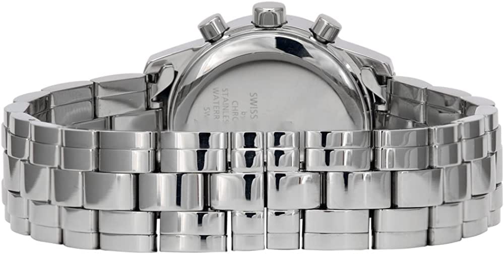 Женские швейцарские наручные часы-хронографХронографФункция позволяет измерять отрезки времени с особой точностью: часы, минуты, секунды. Верным признаком хронографа является наличие на циферблате 3 дополнительных окошек-счётчиков. Swiss Military by Chrono SM34013.01, кварцевый механизм с высокой точностью. Класс водозащиты: 50 метров, позволит защитить корпус от случайных брызг или капель дождя. Стрелки и метки с люминесцентным покрытиемЛюминесцентное покрытиеПозволяет считывать показания времени в темноте. Производители наносят на стрелки, часовые индексы, безель или поверхность циферблата светонакопительный состав, дающий холодное свечение.. Корпус часов изготовлен из стали. Минеральное стеклоМинеральное стеклоМинеральное стекло представляет собой искусственно выращенный минерал кварца. Такое стекло отличается особой устойчивостью к повреждениям и царапинам. Уступает по некоторым качествам сапфировому стеклу.. Браслет с раскладной застёжкойРаскладная застёжкаТакой тип застёжки используется только на браслетах из металла. Она никогда не раскрывается полностью, происходит разделение на 2 и более частей. Раскладывающая застёжка снизит вероятность потери часов к минимуму..