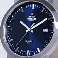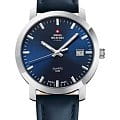 Мужские швейцарские наручные часы Swiss Military by Chrono SM34083.06, Кварцевый механизм с высокой точностью. Класс водозащиты: 50 метров, позволит защитить корпус от случайных брызг или капель дождя. Стрелки и метки с люминесцентным покрытиемЛюминесцентное покрытиеПозволяет считывать показания времени в темноте. Производители наносят на стрелки, часовые индексы, безель или поверхность циферблата светонакопительный состав, дающий холодное свечение.. Корпус выполнен из нержавеющей стали. Устойчивое к возникновению царапин минеральное стеклоМинеральное стеклоМинеральное стекло представляет собой искусственно выращенный минерал кварца. Такое стекло отличается особой устойчивостью к повреждениям и царапинам. Уступает по некоторым качествам сапфировому стеклу.. Кожаный ремешок синего цвета.