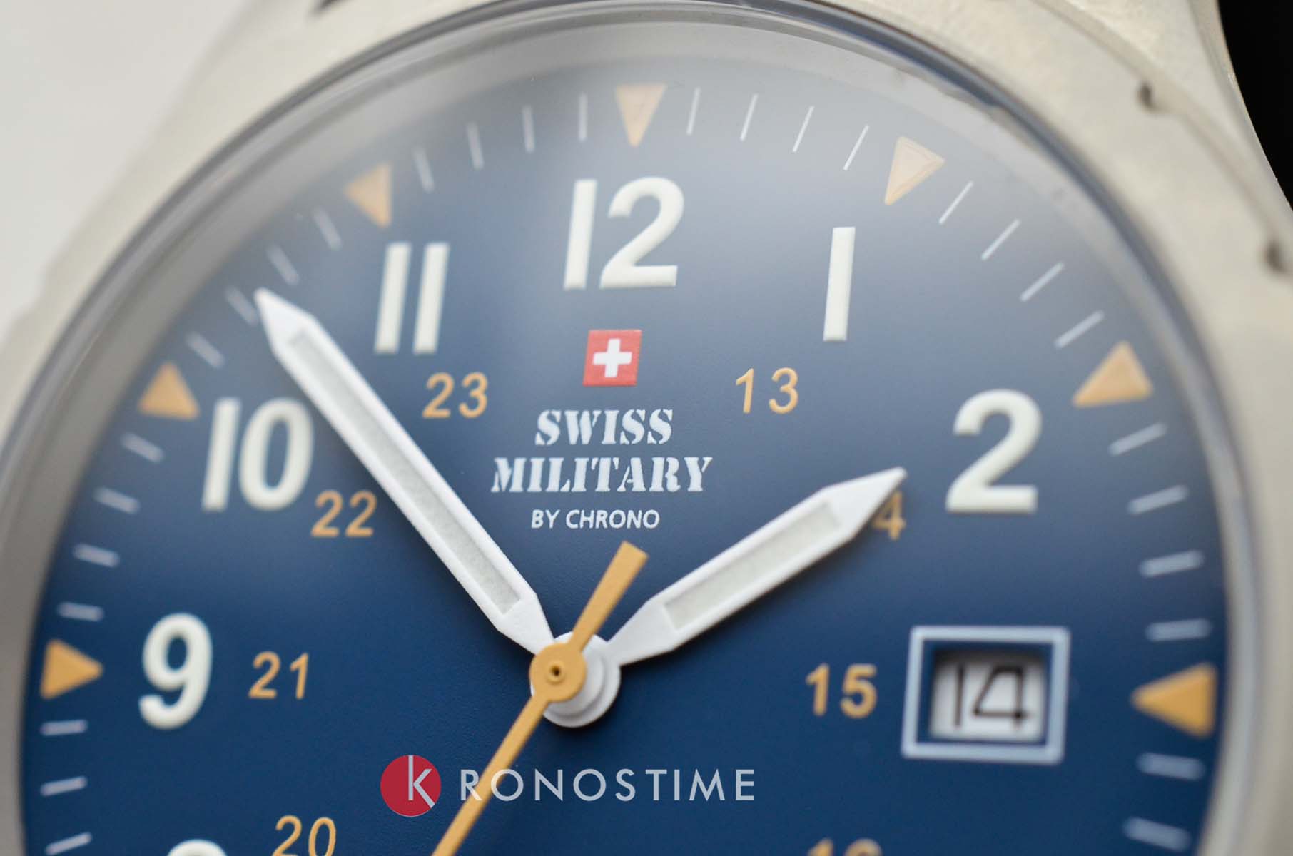 Модель SM34108.05 от Swiss Military by Chrono — это надёжные швейцарские часы в классическом армейском стиле, сочетающие функциональность и сдержанный дизайн. Корпус выполнен из нержавеющей стали с PVD-покрытиемPVDУльтратонкое покрытие наносится в технике вакуумного напыления, сочетает в себе нитрид титана особой прочности со слоем золота или оксида хрома. Несёт в себе декоративную или защитную функцию., подчёркивая прочность и элегантность конструкции. Циферблат с арабскими цифрами обеспечивает отличную читаемость, а функция отображения даты добавляет практичности. Часы оснащены кварцевым механизмом, обеспечивающим точный ход. Циферблат защищён сапфировым стекломСапфировое стеклоПрочный и надёжный материал из кристалла сапфира синтетического происхождения, характеризующийся особой твёрдостью и устойчивостью к царапинам и повреждениям., устойчивым к царапинам. Тканевый ремешок на стандартной застежке для надёжной фиксации на запястье. Модель обладает водонепроницаемостью до 100 метров, что делает её подходящей для плавания и сноркелинга.