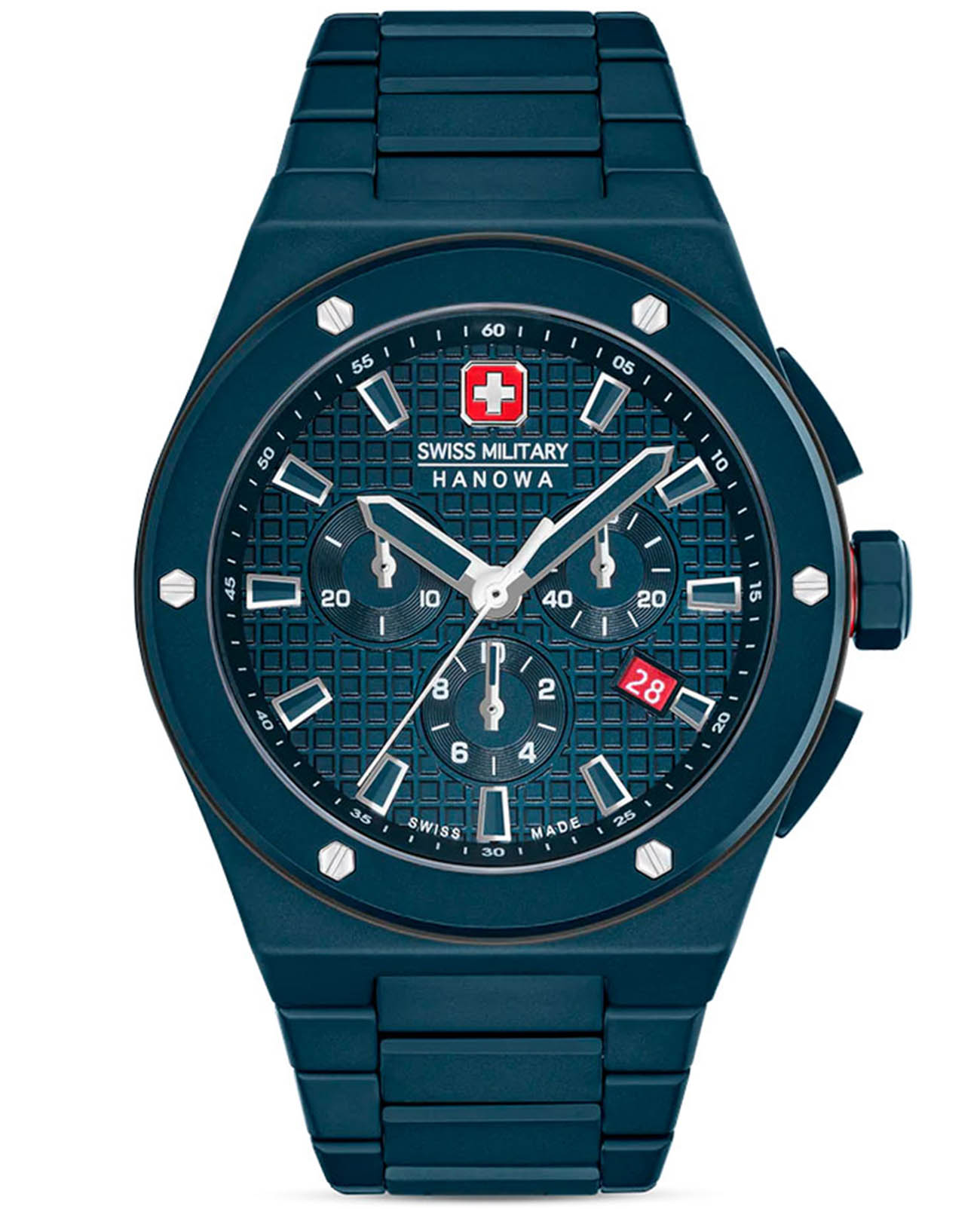 Мужские швейцарские часы-хронографХронографФункция позволяет измерять отрезки времени с особой точностью: часы, минуты, секунды. Верным признаком хронографа является наличие на циферблате 3 дополнительных окошек-счётчиков. Swiss Military Hanowa Thunderbolt Chrono SMWGI0002281, кварцевый механизм с высокой точностью. Сапфировое стеклоСапфировое стеклоПрочный и надёжный материал из кристалла сапфира синтетического происхождения, характеризующийся особой твёрдостью и устойчивостью к царапинам и повреждениям. устойчивое к появлению царапин, обладающее высокой прозрачностью. Класс водозащиты: 100 метров, позволит плавать, нырять и заниматься другими водными видами спорта. Корпус часов изготовлен из керамики. Керамический браслет с застежкой бабочкаЗастёжка "бабочка"Такой вид застёжки дополняется предохранителями, помогающими избежать случайного раскрытия браслета. Обладают изящным исполнением.