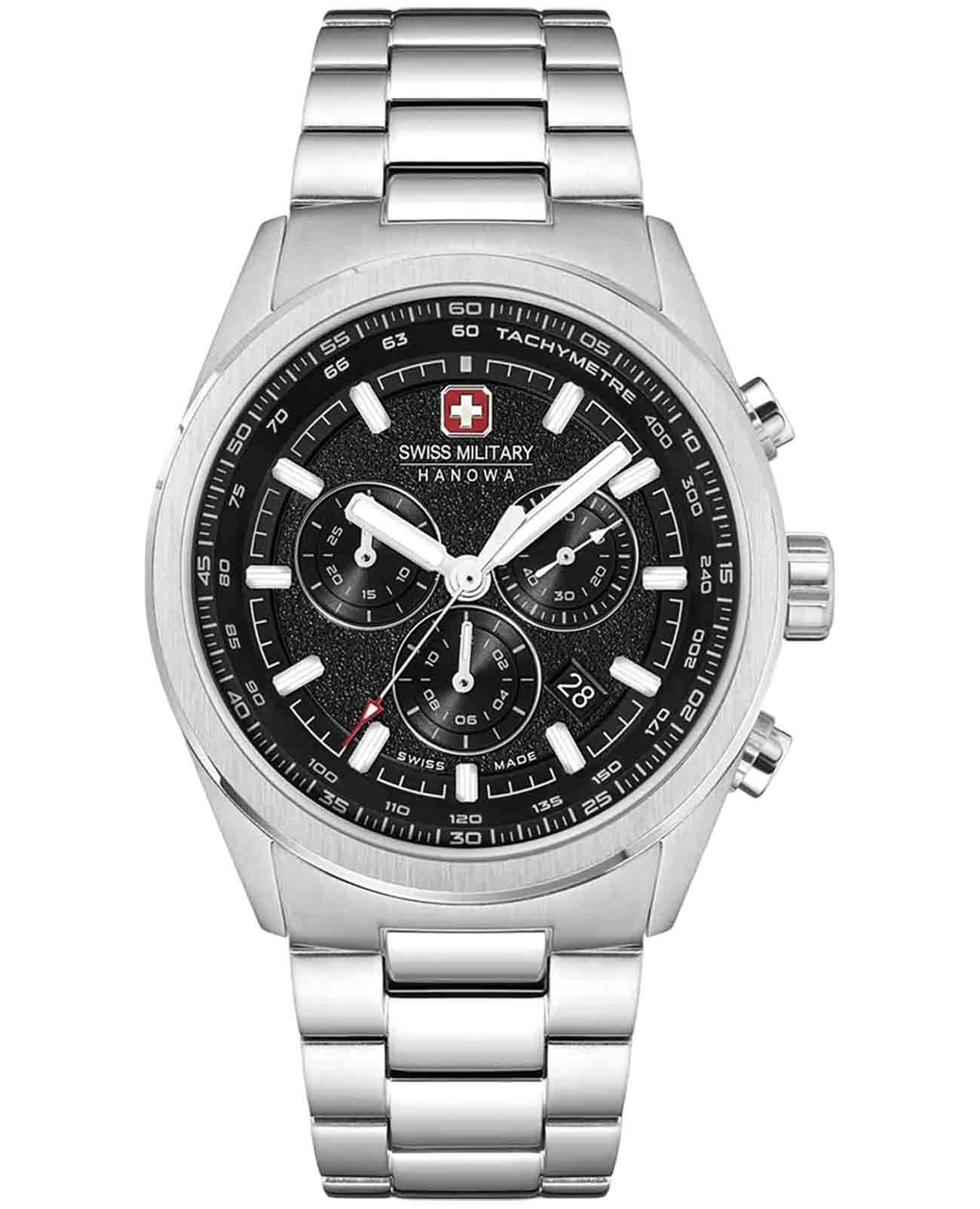 Мужские швейцарские часы Swiss Military Hanowa SMWGI0004204 – это элегантные часы, сочетающие в себе классический дизайн и современную функциональность. Корпус из нержавеющей стали диаметром 43 мм сбалансирован и элегантен. Сапфировое стеклоСапфировое стеклоПрочный и надёжный материал из кристалла сапфира синтетического происхождения, характеризующийся особой твёрдостью и устойчивостью к царапинам и повреждениям. с антибликовым покрытием защищает циферблат от царапин и обеспечивает отличную читаемость при любом освещении. Браслет с раскладной застёжкойРаскладная застёжкаТакой тип застёжки используется только на браслетах из металла. Она никогда не раскрывается полностью, происходит разделение на 2 и более частей. Раскладывающая застёжка снизит вероятность потери часов к минимуму. идеально дополняют дизайн часов, обеспечивая комфортное ношение. Люминесцентное покрытиеЛюминесцентное покрытиеПозволяет считывать показания времени в темноте. Производители наносят на стрелки, часовые индексы, безель или поверхность циферблата светонакопительный состав, дающий холодное свечение. стрелок и меток позволит вам следить за временем даже в полной темноте. Циферблат с точным механизмом хронографаХронографФункция позволяет измерять отрезки времени с особой точностью: часы, минуты, секунды. Верным признаком хронографа является наличие на циферблате 3 дополнительных окошек-счётчиков. и хорошо заметным индикатором даты в положении между 4 и 5 часов. ТахиметрТахиметрРазмеченная шкала, располагается на ободке или безеле часов. Тахиметр позволяет рассчитать скорость на определённом участке пути, расстояние измеряется в километрах или милях. по внешнему краю. Водонепроницаемость до 100 метров хорошо подходят для повседневного ношения и занятий водными видами спорта.
