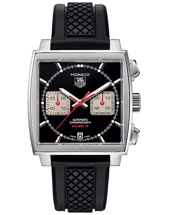 Часы TAG Heuer Monaco CAW2114.FT6021 — это стильное сочетание современного дизайна и часового мастерства. Корпус из нержавеющей стали диаметром 39 мм защищён сапфировым стекломСапфировое стеклоПрочный и надёжный материал из кристалла сапфира синтетического происхождения, характеризующийся особой твёрдостью и устойчивостью к царапинам и повреждениям., что обеспечивает отличную видимость и защиту от царапин. Черный циферблат с хронографомХронографФункция позволяет измерять отрезки времени с особой точностью: часы, минуты, секунды. Верным признаком хронографа является наличие на циферблате 3 дополнительных окошек-счётчиков. и секундомеромСекундомерСекундоме́р — прибор, способный измерять интервалы времени с точностью до долей секунды.. Люминесцентные стрелки и меткиЛюминесцентное покрытиеПозволяет считывать показания времени в темноте. Производители наносят на стрелки, часовые индексы, безель или поверхность циферблата светонакопительный состав, дающий холодное свечение. обеспечивают превосходную читаемость даже в условиях низкой освещённости. Эти элегантные часы с калибром Calibre 12, который обеспечивает точность хода. Браслет из каучука оснащён раскладной застёжкойРаскладная застёжкаТакой тип застёжки используется только на браслетах из металла. Она никогда не раскрывается полностью, происходит разделение на 2 и более частей. Раскладывающая застёжка снизит вероятность потери часов к минимуму. с кнопкой, что обеспечивает удобство и надёжность. Водонепроницаемость до 100 метров делает часы подходящими для плавания и активного использования. TAG Heuer Monaco CAW2114.FT6021 — это выбор для тех, кто ценит утончённость, стиль и высочайшее качество.