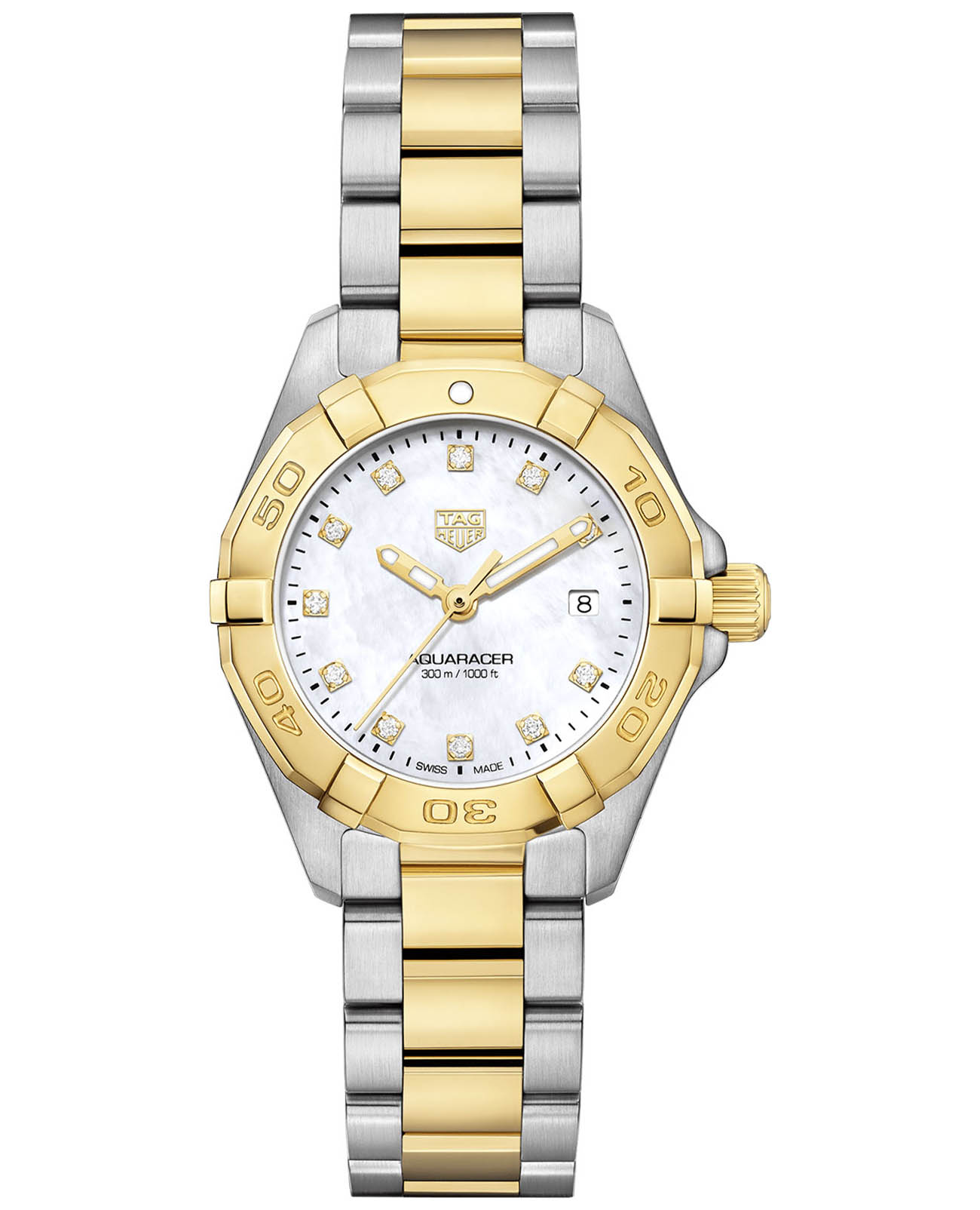 Женские швейцарские часы TAG Heuer Aquaracer WBD1422.BB0321, кварцевый механизм с высокой точностью. Сапфировое стеклоСапфировое стеклоПрочный и надёжный материал из кристалла сапфира синтетического происхождения, характеризующийся особой твёрдостью и устойчивостью к царапинам и повреждениям. с антибликовым покрытием устойчивое к появлению царапин, обладающее высокой прозрачностью. Класс водозащиты: 300 метров, позволит плавать, нырять и заниматься другими водными видами спорта. Корпус часов изготовлен из стали. Стальной браслет на раскладной застёжкеРаскладная застёжкаТакой тип застёжки используется только на браслетах из металла. Она никогда не раскрывается полностью, происходит разделение на 2 и более частей. Раскладывающая застёжка снизит вероятность потери часов к минимуму. с 18-каратным золотом18-каратное золотоОбозначение по каратной системе пробирования, оно показывает, сколько драгоценного металла содержится в изделии. 18 карат - в составе 75% чистого золота, соответствует 750 пробе.