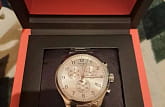 Мужские швейцарские часы оснащены высокоточным хронографом, три дополнительных окошка на циферблате придают модели спортивный облик.