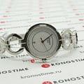 Стальной браслет с кольцевидными звеньями дополнен минималистичым циферблатом с оригинальным оформлением: белоснежная серединка и перламутровая вставка по окружности. Вместо часовых индексов использованы бриллианты. Кварцевый калибр ETA F03.111. Узнаваемый дизайн. Водостойкость до 50 метров. Сапфировое стекло устойчиво к образованию царапин. Индикация даты, функция EOLEOLПредставляет собой систему, уведомляющую владельца часов о необходимости замены элемента питания. За 2 недели до полного разряда батарейки секундная стрелка перестаёт ходить чётко и начинает перепрыгивать на 3-4 деления.. Габариты: 26 x 26 x 7 мм.