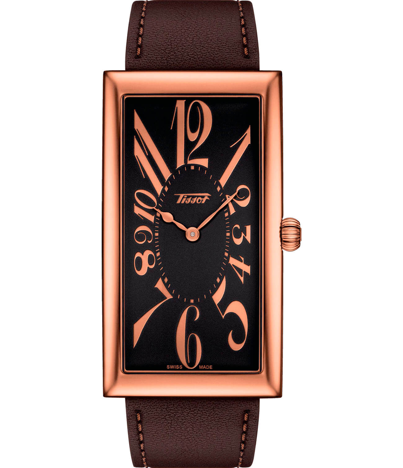 Необычный аксессуар в стиле ретро отражает историю Tissot, модель подойдёт тем, кто не равнодушен к винтажу и хочет поразить окружающих тонким вкусом. Прямоугольный циферблат дополнен арабскими цифрами. Кварцевый высокоточный калибр ETA 901.001. Купольное минеральное стекло противостоит к образованию царапин на поверхности. Ремешок из натуральной кожи. . PVD-покрытиеPVDУльтратонкое покрытие наносится в технике вакуумного напыления, сочетает в себе нитрид титана особой прочности со слоем золота или оксида хрома. Несёт в себе декоративную или защитную функцию. в цвете розового золота. Габариты: 49 x 27 x 7 мм.