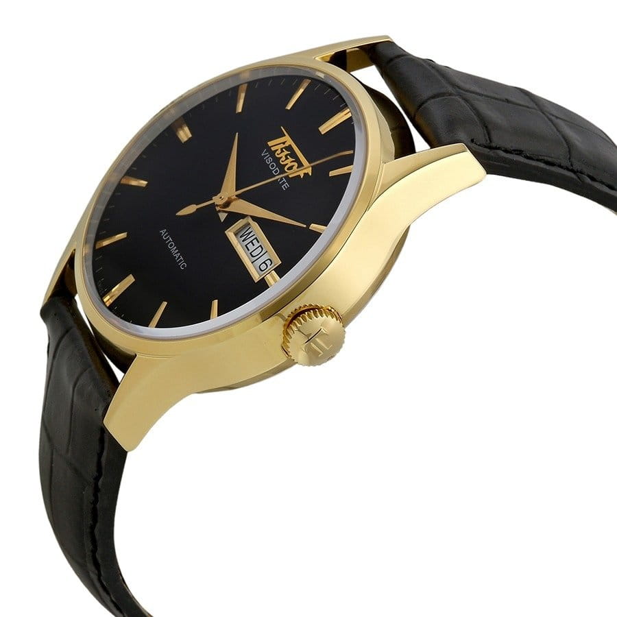 TISSOT T0194303605101 Heritage Visodate Automatic - мужские механические наручные часы Корпус этих часов среднего размера (393 мм) и выполнен из нержавеющей стали L316 с PVD-покрытием цвета желтого золота Модель TISSOT T0194303605101 Heritage Visodate Automatic имеет устойчивое к царапинам сапфировое стекло, ремешок из натуральной кожи черного цвета, черный циферблат Калибр механизма: ETA 2836-2 Класс водозащиты: 30 м / 3 АТМ (защита от брызг и случайных капель) Дополнительные функции и особенности: отображение числа, отображение дня недели Полная заводская комплектация TISSOT: оригинальные часы, фирменная коробка, инструкция, сервисная книжка, роман о часовой фабрике, миникаталог, замшевый фирменный чехол черного цвета для хранения и/или переноски часов, кассовый и товарный чеки Международная гарантия 2 года