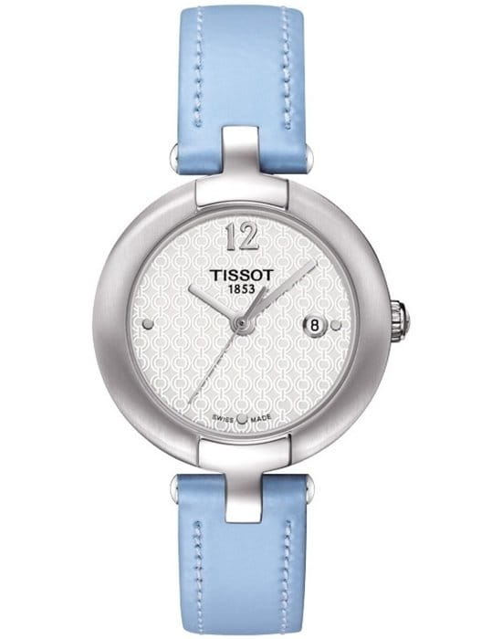 TISSOT T0842101601702 T-Trend Pinky By Tissot Quartz - женские кварцевые наручные часы Корпус этих часов небольшого размера (2795 мм) и выполнен из нержавеющей стали L316 металлического цвета Модель TISSOT T0842101601702 T-Trend Pinky By Tissot Quartz имеет устойчивое к царапинам сапфировое стекло, ремешок из натуральной кожи голубого цвета, белый циферблат Калибр механизма: ETA F03111 Класс водозащиты: 30 м / 3 АТМ (защита от брызг и случайных капель) Дополнительные функции и особенности: отображение числа Полная заводская комплектация TISSOT: оригинальные часы, фирменная коробка, инструкция, сервисная книжка, роман о часовой фабрике, миникаталог, замшевый фирменный чехол черного цвета для хранения и/или переноски часов, кассовый и товарный чеки Международная гарантия 2 года Производство и сборка: Швейцария