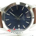 Синий циферблат в лаконичном исполнении не содержит лишних деталей, чтобы ничего не отвлекало от просмотра времени или сегодняшнего числа. Прочный ремешок из натуральной коровьей кожи надёжно обхватывает запястье. Кварцевый механизм ETA F06.115 с 3 камнями. Сапфировое стекло практически невозможно поцарапать. Водонепроницаемость при давлении 10 бар. Люминесцентная подсветкаЛюминесцентное покрытиеПозволяет считывать показания времени в темноте. Производители наносят на стрелки, часовые индексы, безель или поверхность циферблата светонакопительный состав, дающий холодное свечение.. Функция EOLEOLПредставляет собой систему, уведомляющую владельца часов о необходимости замены элемента питания. За 2 недели до полного разряда батарейки секундная стрелка перестаёт ходить чётко и начинает перепрыгивать на 3-4 деления.. Габариты: 40 x 40 x 8,52 мм.