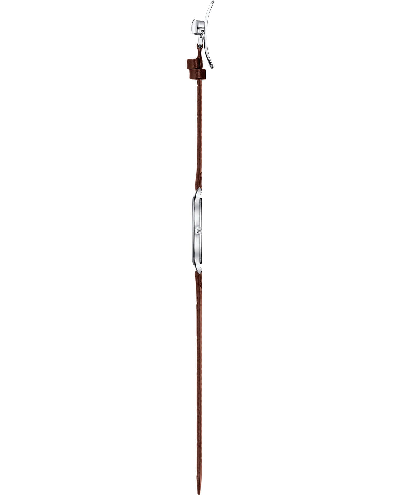 Минималистичный белый циферблат идеально гармонирует с ремешком из натуральной кожи, характерный рисунок под кожу крокодила придаёт часам особый стиль. Такие наручные часы сохранят актуальность на многие года вперёд. Кварцевый калибр ETA E64.031. Сверхтонкий корпус из хирургической стали 316L. Сапфировое стекло. Водонепроницаемость 3 бар. EOLEOLПредставляет собой систему, уведомляющую владельца часов о необходимости замены элемента питания. За 2 недели до полного разряда батарейки секундная стрелка перестаёт ходить чётко и начинает перепрыгивать на 3-4 деления.. Габариты: 39 x 39 x 5,2 мм.