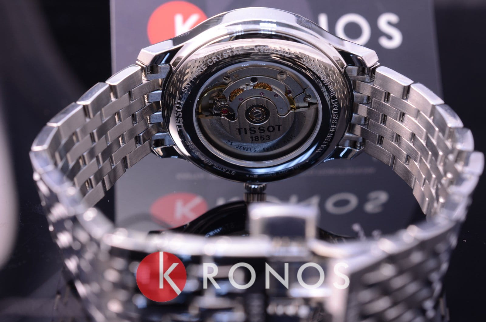 Циферблат выполнен в чёрном цвете, центр украшен оригинальным узором, что придаёт модели индивидуальные черты. Наручные часы с широким стальным браслетом удобно сидят на запястье, не вызывая дискомфорта. Автоматический высокоточный калибр ETA 2825-2 сохраняет запас хода до 38 часов, за его работой можно следить сквозь прозрачную заднюю крышку корпуса. Выпуклое сапфировое стекло. Водонепроницаемость 30 метров. Отображение даты. Габариты: 40 x 40 x 11 мм.