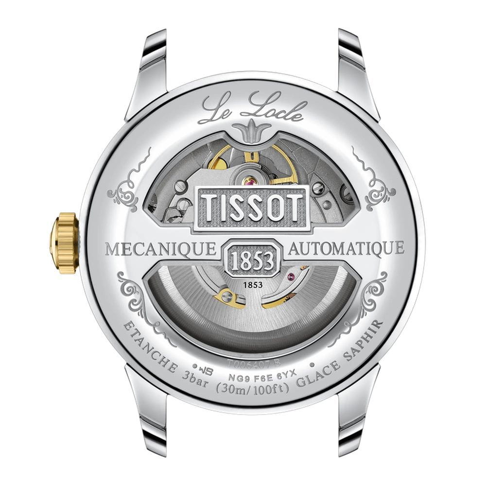 Мужские наручные часы Tissot Le Locle Powermatic 80Powermatic 80Эксклюзивный калибр от швейцарской компании ETA с увеличенным запасом хода до 80 часов за счёт удлинённой заводной пружины. Характеризуется улучшенной системой спуска со сниженным трением. (модель T006.407.22.093.00) – воплощение элегантности и точности. Корпус из нержавеющей стали 316L диаметром 39,3 мм подчёркивает классический стиль, а прозрачная задняя крышка позволяет наблюдать за работой механизма. БезельБезельВнешний ободок, закрепляющий стекло. В спортивных часах так называется поворотное кольцо с делениями на циферблате, выполняет роль таймера – замеряет отрезки времени на шкале. Неподвижный безель – элемент декора. Однонаправленно вращающийся безель на дайверских часах позволяет фиксировать моменты погружения и выныривания на поверхность. с PVD-покрытиемPVDУльтратонкое покрытие наносится в технике вакуумного напыления, сочетает в себе нитрид титана особой прочности со слоем золота или оксида хрома. Несёт в себе декоративную или защитную функцию.. Глубокий циферблат с узором "clous de Paris" и римскими цифрами надёжно защищён сапфировым стекломСапфировое стеклоПрочный и надёжный материал из кристалла сапфира синтетического происхождения, характеризующийся особой твёрдостью и устойчивостью к царапинам и повреждениям. с антибликовым покрытиемАнтибликовое покрытиеСлой оксида металла в 0,13-0,3 микрон, благодаря которому стекло часов не бликует и не отражает свет. Антибликовое покрытие уменьшает отражение света в 10 раз, обеспечивая отличную читаемость показателей циферблата., обеспечивающим чёткое считывание времени. Автоматический механизм оснащён инновационной пружиной Nivachron™Nivachron™Специально разработанный инновационный сплав Nivachron™ повышает устойчивость часов к воздействию магнитных полей., устойчивой к магнитным полям и ударам, а запас хода достигает 80 часов. Стальной браслет с PVD-покрытиемPVDУльтратонкое покрытие наносится в технике вакуумного напыления, сочетает в себе нитрид титана особой прочности со слоем золота или оксида хрома. Несёт в себе декоративную или защитную функцию. на застёжке-бабочке с кнопкамиЗастёжка "бабочка"Такой вид застёжки дополняется предохранителями, помогающими избежать случайного раскрытия браслета. Обладают изящным исполнением. , обеспечивающей комфорт и надёжную фиксацию. Водонепроницаемость 3 бара (30 метров) защитит от случайных брызг. Эта модель создана для ценителей классики с технологическим совершенством.