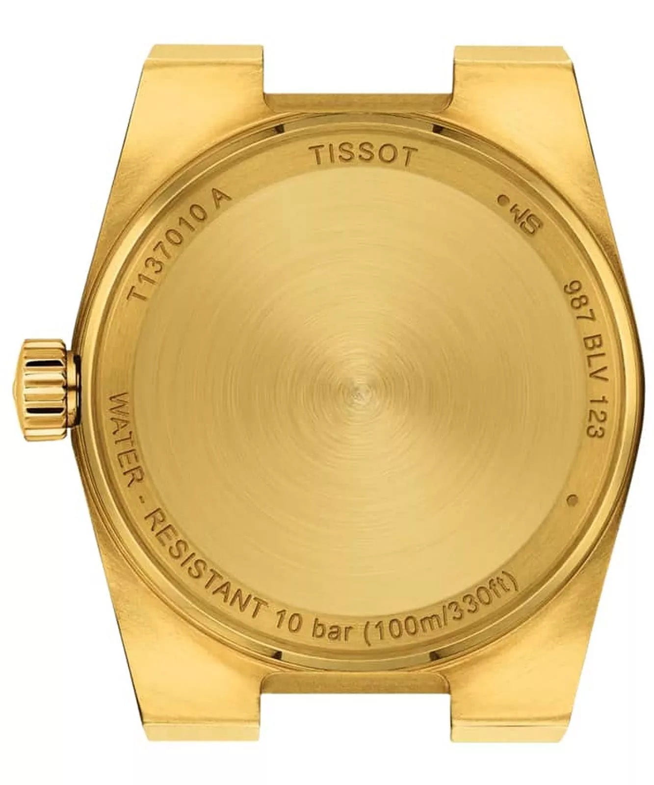 Мужские кварцевые часы Tissot PRX 25 мм T1370103302100 — это стильный аксессуар, вдохновлённый элегантностью 70-х годов. Модель выполнена в тонкой форме из нержавеющей стали 316L с PVD-покрытиемPVDУльтратонкое покрытие наносится в технике вакуумного напыления, сочетает в себе нитрид титана особой прочности со слоем золота или оксида хрома. Несёт в себе декоративную или защитную функцию. цвета жёлтого золота, что придаёт ей благородный внешний вид и устойчивость к царапинам. Циферблат шампанского цвета дополнен индексами, а его поверхность защищена сапфировым стекломСапфировое стеклоПрочный и надёжный материал из кристалла сапфира синтетического происхождения, характеризующийся особой твёрдостью и устойчивостью к царапинам и повреждениям. с антибликовым покрытиемАнтибликовое покрытиеСлой оксида металла в 0,13-0,3 микрон, благодаря которому стекло часов не бликует и не отражает свет. Антибликовое покрытие уменьшает отражение света в 10 раз, обеспечивая отличную читаемость показателей циферблата., устойчивым к повреждениям. Стрелки и метки имеют люминесцентное покрытиеЛюминесцентное покрытиеПозволяет считывать показания времени в темноте. Производители наносят на стрелки, часовые индексы, безель или поверхность циферблата светонакопительный состав, дающий холодное свечение. Super-LumiNova®, обеспечивающее отличную читаемость даже в условиях слабого освещения. Часы оснащены солнечным кварцевым механизмом швейцарского производства, который обеспечивает точную работу и минимальное обслуживание. Аккумулятор Renata 364 гарантирует длительную работу без подзарядки. Браслет из нержавеющей стали с покрытием цвета жёлтого золота оснащён Застёжка "бабочка"Застёжка "бабочка"Такой вид застёжки дополняется предохранителями, помогающими избежать случайного раскрытия браслета. Обладают изящным исполнением. , обеспечивающей комфорт и надёжную фиксацию на запястье. Ремешок является быстросменным, что позволяет легко менять его по желанию. Водонепроницаемость позволяет использовать модель при плавании и других водных активностях без глубокого погружения. Гарантия 2 года подтверждает качество и долговечность изделия. Эти часы станут универсальным аксессуаром для тех, кто ценит сочетание стиля, функциональности и швейцарского мастерства — идеальный выбор для повседневной носки и активного образа жизни.