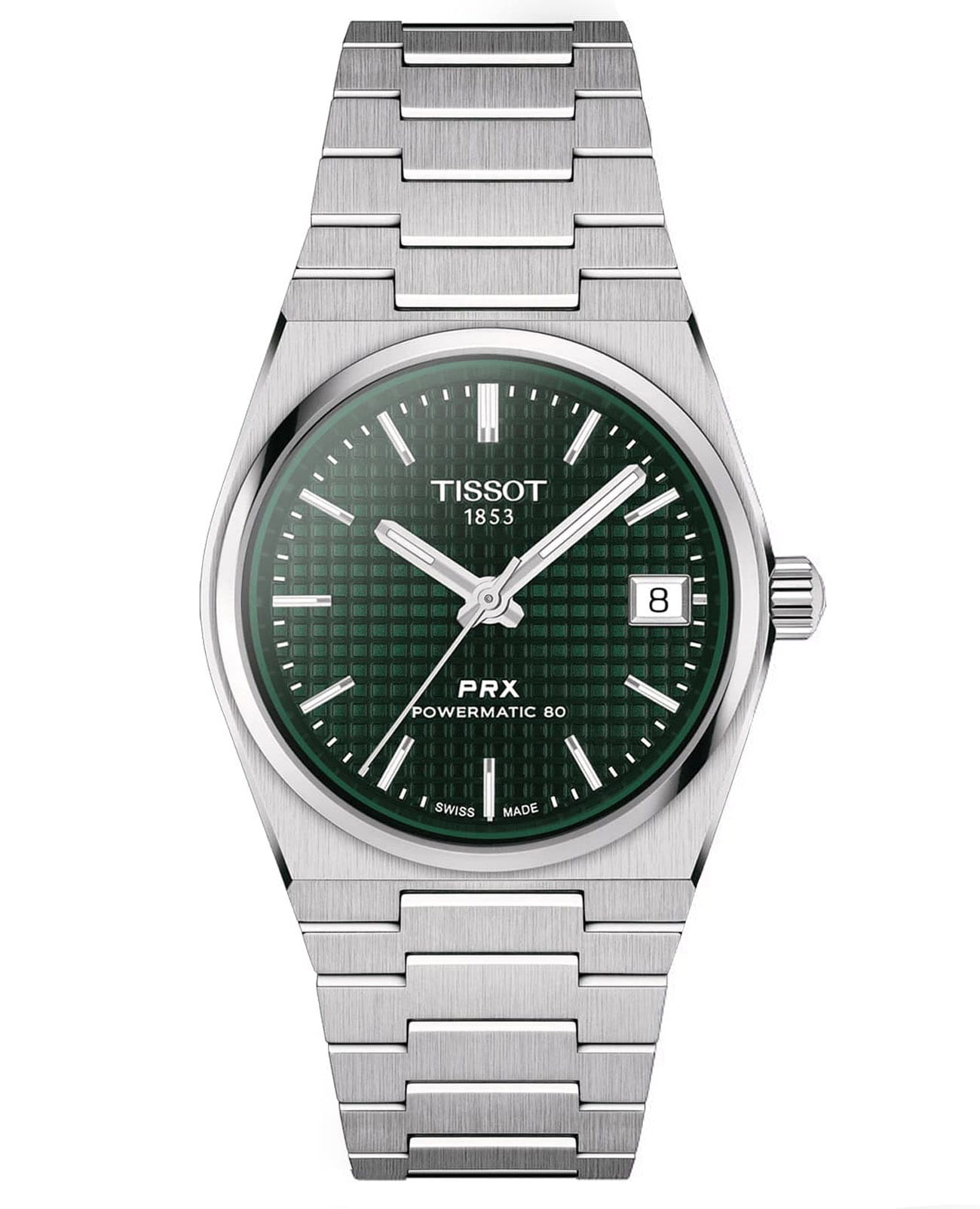 Женские швейцарские часы Tissot PRX Powermatic 80 T137.207.11.091.00, с автоматическим механизмом Powermatic 80.111. Циферблат с люминесцентным покрытиемЛюминесцентное покрытиеПозволяет считывать показания времени в темноте. Производители наносят на стрелки, часовые индексы, безель или поверхность циферблата светонакопительный состав, дающий холодное свечение. стрелок и меток. Эти 35-миллиметровые часы могут похвастаться корпусом из высококачественной стали и очаровательным циферблатом, вдохновленным их знаменитой предшественницей 1978 года. Характерный вафельный циферблат придает модели с автоматическим управлением дополнительный уровень элегантности. Водонепроницаемость до 100 метров и балансировочная спираль Nivachron™ делают часы PRX идеальным выбором для тех, кто разбирается в стиле. Браслет из стали гарантирует комфорт в течение всего дня. Устойчивое к появлению царапин сапфировое стеклоСапфировое стеклоПрочный и надёжный материал из кристалла сапфира синтетического происхождения, характеризующийся особой твёрдостью и устойчивостью к царапинам и повреждениям. с антибликовым покрытием. Браслет серебристого цвета с застёжкой-бабочкой с кнопкамиЗастёжка "бабочка"Такой вид застёжки дополняется предохранителями, помогающими избежать случайного раскрытия браслета. Обладают изящным исполнением. для расстегивания браслета.