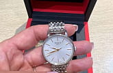 Кварцевый механизм с высокой точностью. Сапфировое стеклоСапфировое стеклоПрочный и надёжный материал из кристалла сапфира синтетического происхождения, характеризующийся особой твёрдостью и устойчивостью к царапинам и повреждениям. устойчивое к появлению царапин, обладающее высокой прозрачностью. Класс водозащиты: 50 метров, позволит защитить корпус от случайных брызг или капель дождя. Корпус часов изготовлен из нержавеющей стали. Браслет с застёжкой «бабочка» с кнопкамиЗастёжка "бабочка"Такой вид застёжки дополняется предохранителями, помогающими избежать случайного раскрытия браслета. Обладают изящным исполнением. .