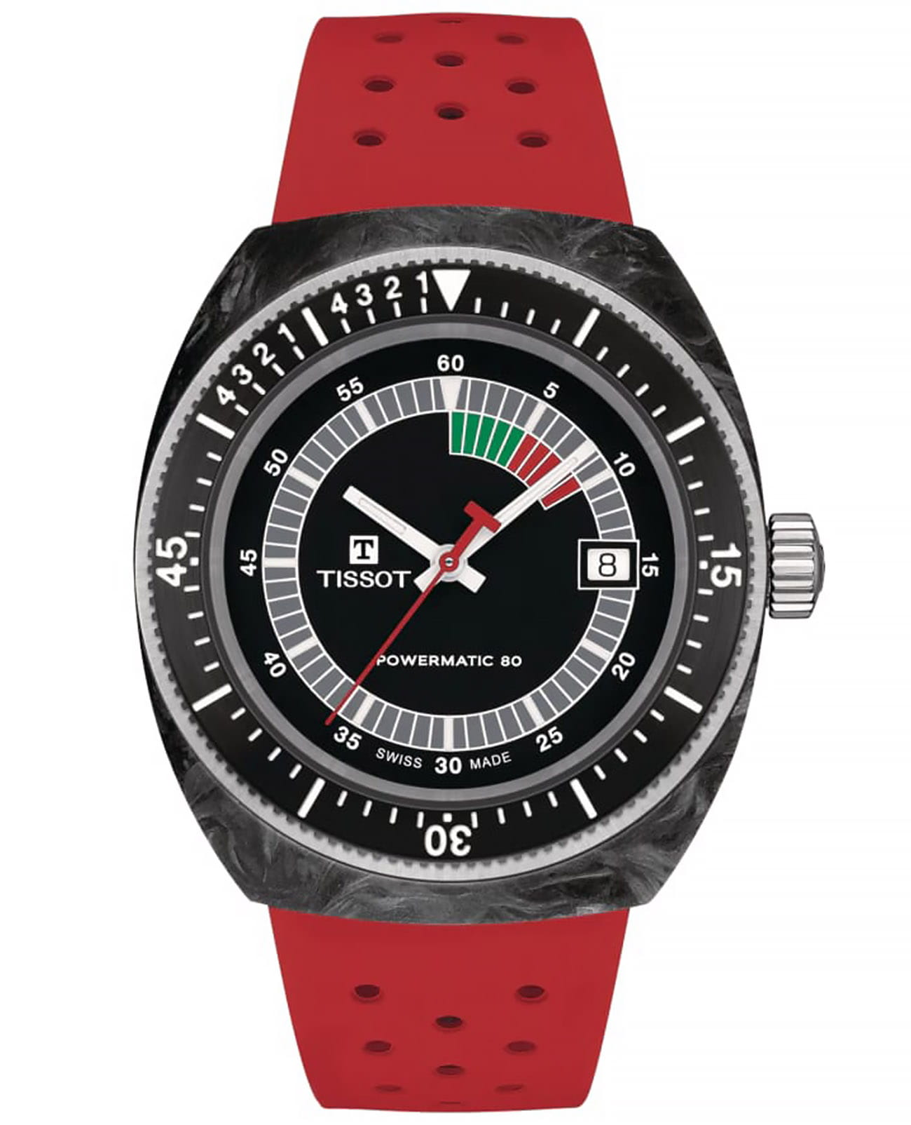 Откройте для себя Tissot Sideral - завораживающее сочетание винтажного очарования и современного мастерства. Часы оснащены кованым карбоновым корпусом шириной 41 мм и ярко-желтым ремешком, отдающим дань уважения их культовым корням 1970-х годов. На циферблате присутствует разноцветная люминесцентная анимация, усиливающая его неповторимый шарм. Обладающий водонепроницаемостью до 30 бар (300 метров) и оснащенный индексами с люминесцентным покрытиемЛюминесцентное покрытиеПозволяет считывать показания времени в темноте. Производители наносят на стрелки, часовые индексы, безель или поверхность циферблата светонакопительный состав, дающий холодное свечение. Super-LumiNova®, Sideral является ярким примером для законодателей моды и любителей истории. Сменный перфорированный силиконовый ремешок позволяет легко адаптироваться к стилю. Окунитесь в экстраординарное с Tissot Sideral.