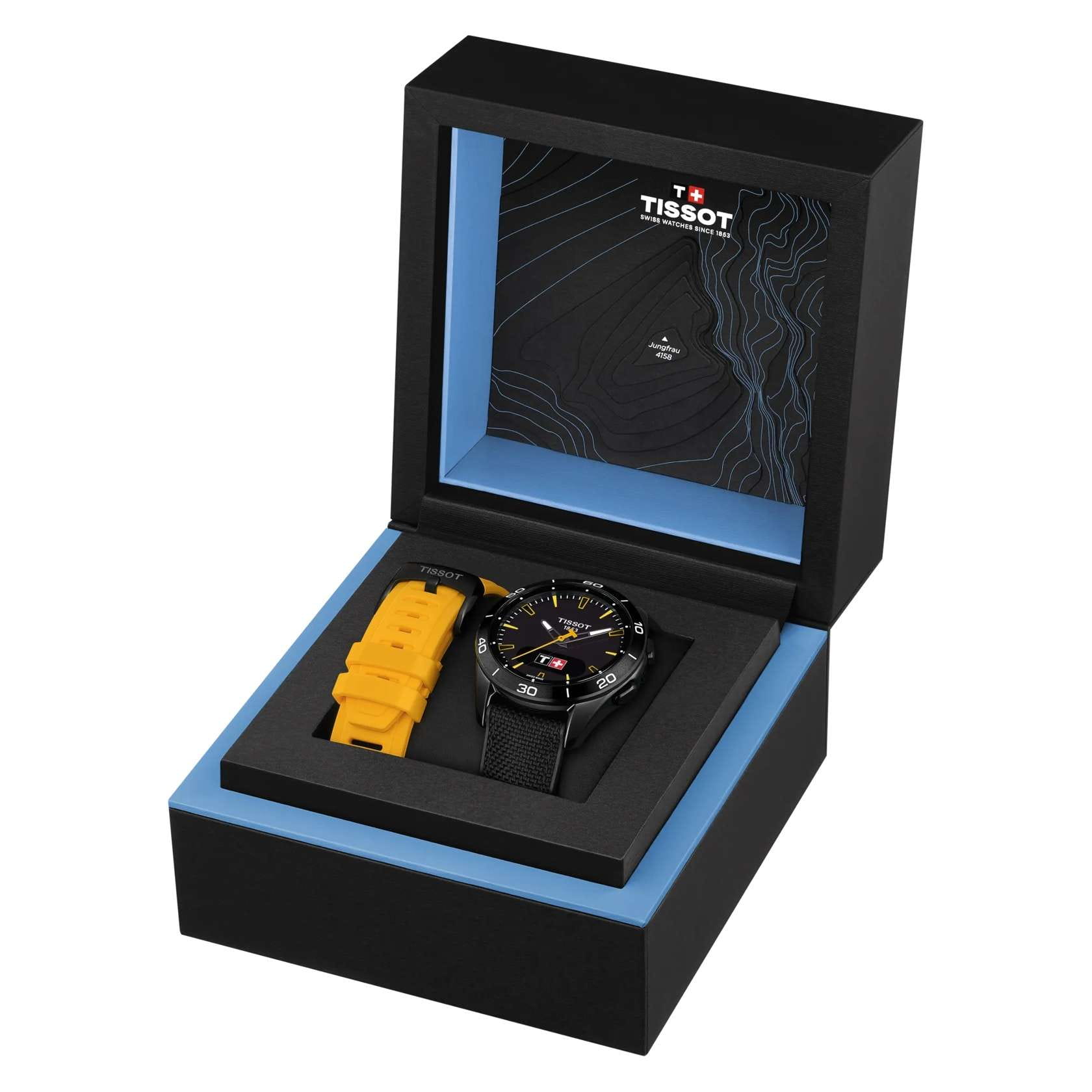 Модель Tissot T-Touch Connect Sport Jungfraubahn Т153.420.47.051.06 сочетающая швейцарское мастерство и современные технологии, заключена в 43-миллиметровый титановый корпус с PVD-покрытиемPVDУльтратонкое покрытие наносится в технике вакуумного напыления, сочетает в себе нитрид титана особой прочности со слоем золота или оксида хрома. Несёт в себе декоративную или защитную функцию. и оснащен сенсорным экраном AMOLED, что обеспечивает соответствие функциональности и стиля. Отслеживая частоту сердечных сокращений, пройденное расстояние, скорость и количество потраченных калорий, эти часы обеспечивают своевременное получение уведомлений о вашем активном образе жизни. Благодаря специальному приложению вы сможете глубже изучить показатели своей работы, тенденции и самочувствие. Сапфировое стеклоСапфировое стеклоПрочный и надёжный материал из кристалла сапфира синтетического происхождения, характеризующийся особой твёрдостью и устойчивостью к царапинам и повреждениям. устойчивое к появлению царапин, обладающее высокой прозрачностью. Приводимые в действие солнечной энергией и системой SwALPS, они обеспечивают длительное использование без необходимости частой подзарядки. Время автономной работы в режиме часов практически бесконечно, а при различных режимах подключения - несколько месяцев. Керамический безельБезельВнешний ободок, закрепляющий стекло. В спортивных часах так называется поворотное кольцо с делениями на циферблате, выполняет роль таймера – замеряет отрезки времени на шкале. Неподвижный безель – элемент декора. Однонаправленно вращающийся безель на дайверских часах позволяет фиксировать моменты погружения и выныривания на поверхность. черного цвета. Текстильный ремешок на стандартной застёжке обеспечивает комфортное ношение. Класс водозащиты: 50 метров, позволит плавать, нырять и заниматься другими водными видами спорта. Tissot T-Touch Connect Sport сокращает разрыв между традиционным швейцарским часовым искусством и практичной функциональностью, что делает его идеальным решением для тех, кто следит за модой.