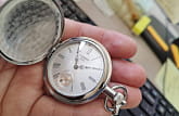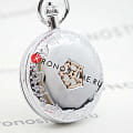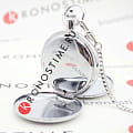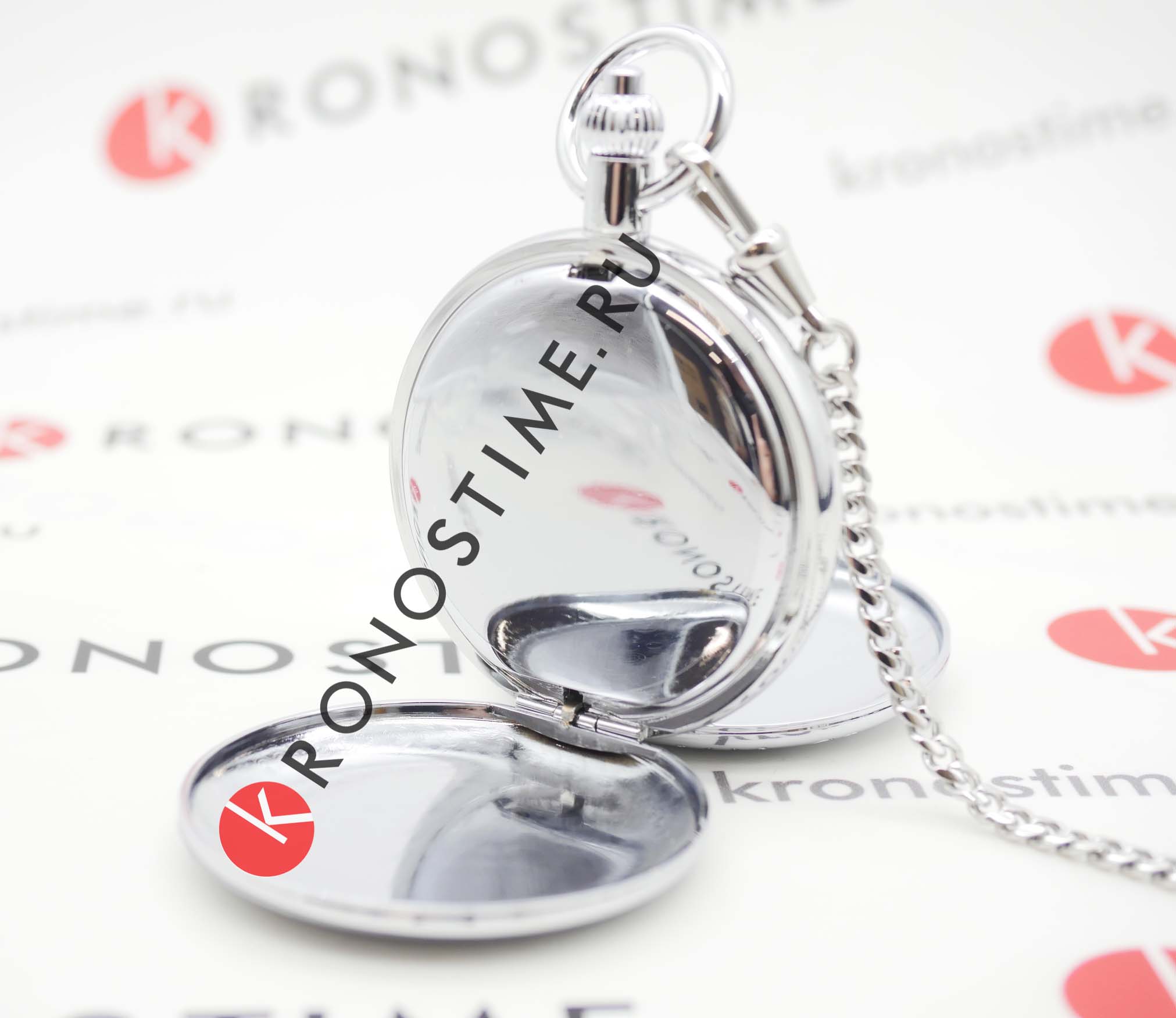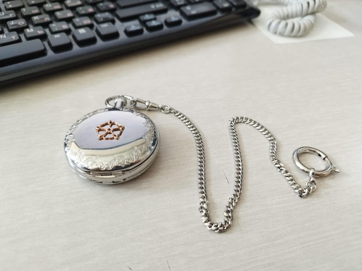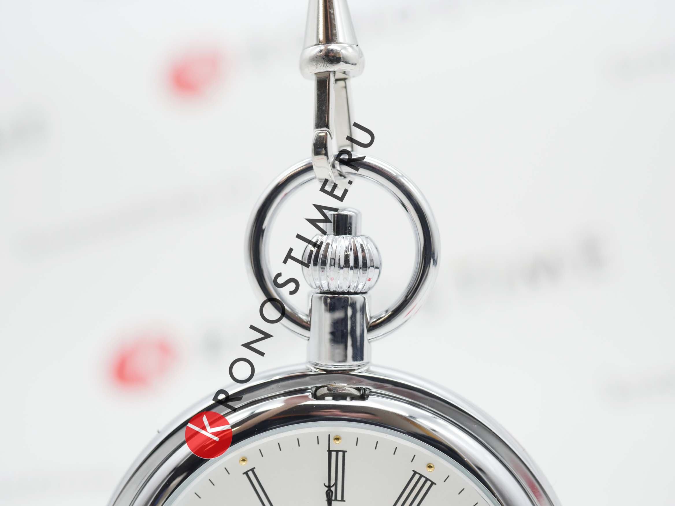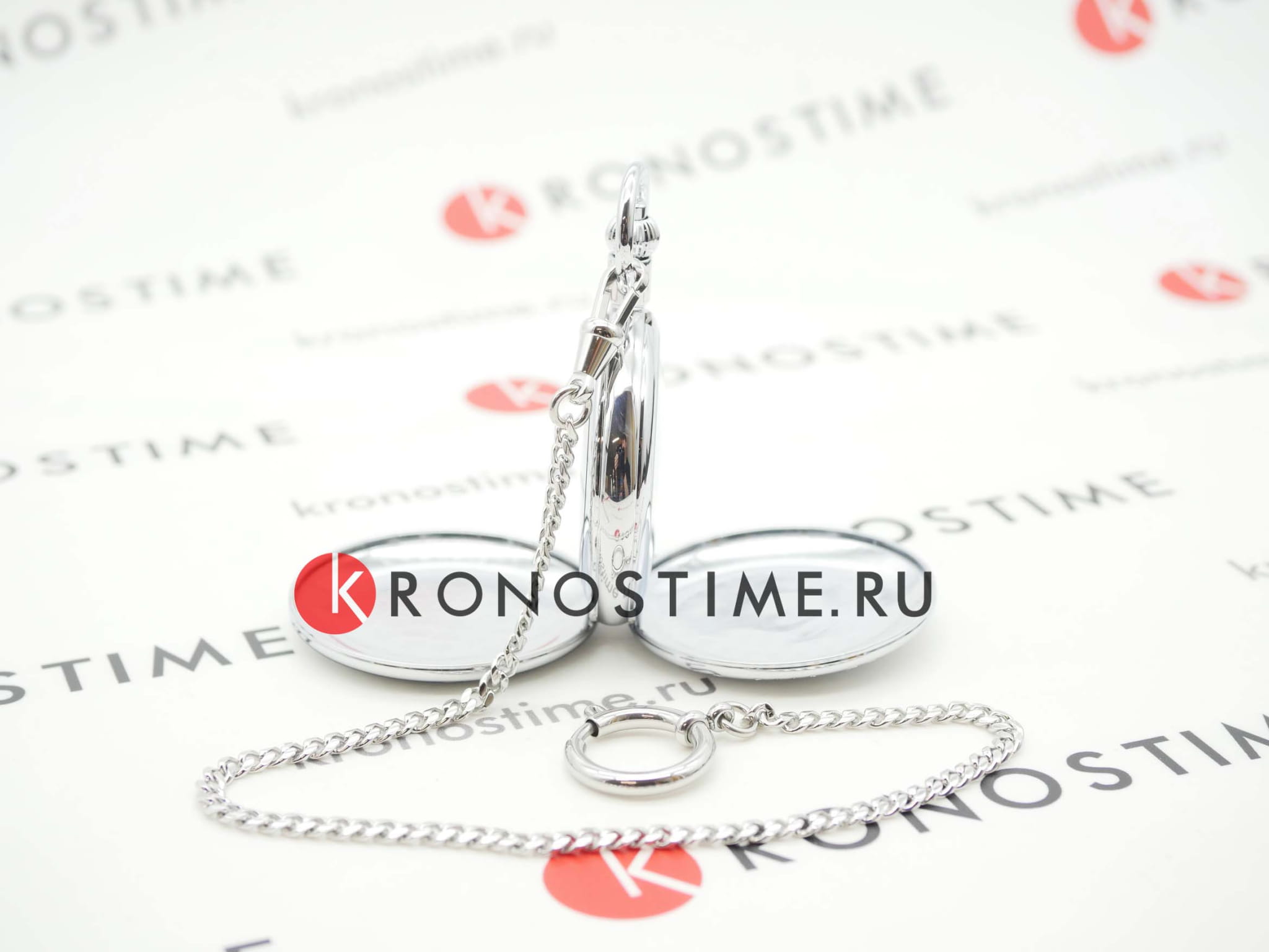 Модель имеет лёгкий ностальгический оттенок, крышка дополнена узнаваемым логотипом. Серебристый циферблат дополнен римскими цифрами, привлекательно смотрятся акценты цвета розового золота. Контрастные ажурные стрелки – отдельное произведение искусства. Это механические часы с ручным заводом, что необходимо делать регулярно. Они оснащены швейцарским пружинным механизмом ETA 6498-1, запас хода рассчитан на 46 часов. Калибр скрывается внутри корпуса из гипоаллергенной латуни с палладиевым покрытием. Используется 2 вида стекла – минеральное и хезалитовое. Часы поставляются в комплекте с цепочкой. Диаметр корпуса: 49,8 мм.