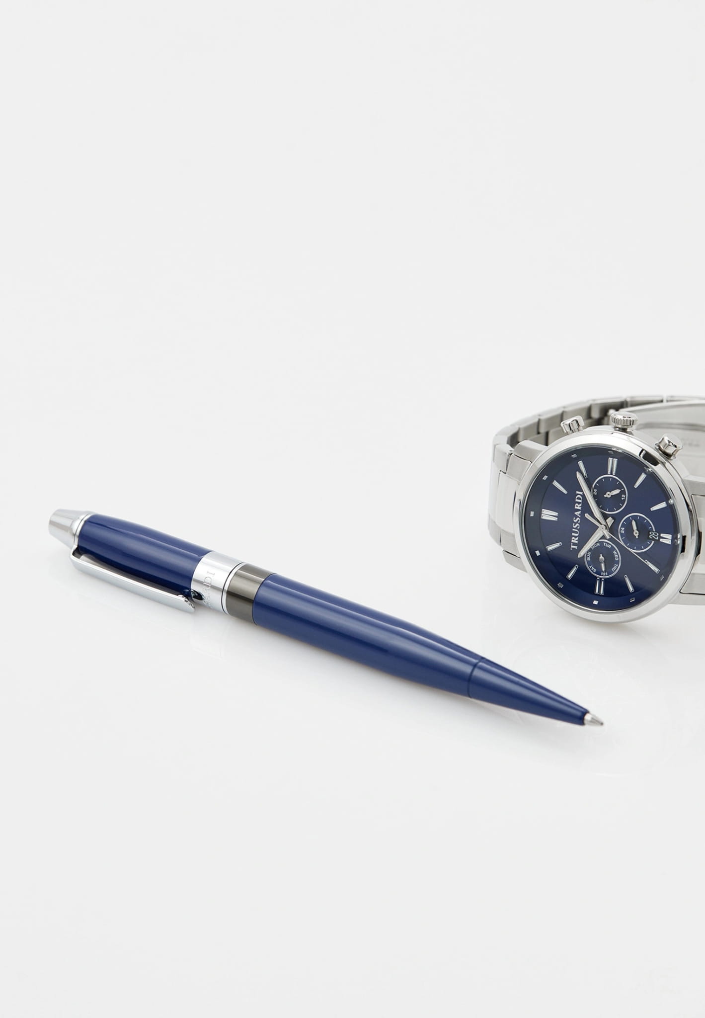 Итальянские мужские часы Trussardi T-Couple R2453147018 - это стильный мужской аксессуар, который сочетает элегантный дизайн и практичность. Корпус выполнен из нержавеющей стали, что обеспечивает долговечность и утончённый внешний вид. Надежное минеральное стеклоМинеральное стеклоМинеральное стекло представляет собой искусственно выращенный минерал кварца. Такое стекло отличается особой устойчивостью к повреждениям и царапинам. Уступает по некоторым качествам сапфировому стеклу. защищает циферблат от царапин и обеспечивает долговечность. Модель оснащена кварцевым механизмом, обеспечивающим высокую точность хода. Браслет из нержавеющей стали с раскладной застёжкойРаскладная застёжкаТакой тип застёжки используется только на браслетах из металла. Она никогда не раскрывается полностью, происходит разделение на 2 и более частей. Раскладывающая застёжка снизит вероятность потери часов к минимуму. обеспечивает комфортное ношение. Водозащита 50 метров позволит защитить корпус от случайных брызг или капель дождя. Вынесенный циферблат с 24-х часовым указателем времени, второй часовой пояс в 24-х часовом формате, а также вынесенный циферблат с указателем дня недели. Окошко даты в положении 6 часов. Стрелки и метки оснащены люминесцентным покрытиемЛюминесцентное покрытиеПозволяет считывать показания времени в темноте. Производители наносят на стрелки, часовые индексы, безель или поверхность циферблата светонакопительный состав, дающий холодное свечение., обеспечивающим отличную видимость даже при слабом освещении. Эта модель – отличный выбор для тех, кто ищет сочетание стиля, качества и функциональности. Часы станут не только полезным аксессуаром, но и выразительным элементом вашего имиджа. В наборе с часами идет шариковая ручка.
