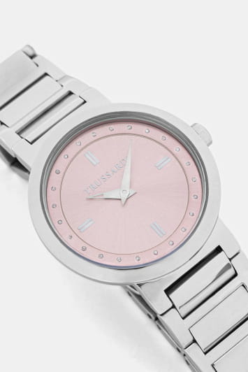 Итальянские женские часы Trussardi T-Bridge R2453171508 - это стильный женский аксессуар, который сочетает элегантный дизайн и практичность. Корпус выполнен из нержавеющей стали, что обеспечивает долговечность и утончённый внешний вид. Надежное минеральное стеклоМинеральное стеклоМинеральное стекло представляет собой искусственно выращенный минерал кварца. Такое стекло отличается особой устойчивостью к повреждениям и царапинам. Уступает по некоторым качествам сапфировому стеклу. защищает циферблат с кристаллами от царапин и обеспечивает долговечность. Модель оснащена кварцевым механизмом, обеспечивающим высокую точность хода. Браслет из нержавеющей стали на раскладной застёжкеРаскладная застёжкаТакой тип застёжки используется только на браслетах из металла. Она никогда не раскрывается полностью, происходит разделение на 2 и более частей. Раскладывающая застёжка снизит вероятность потери часов к минимуму. обеспечивает комфортное ношение. Водозащита 50 метров позволит защитить корпус от случайных брызг или капель дождя. Эта модель – отличный выбор для тех, кто ищет сочетание стиля, качества и функциональности. Часы станут не только полезным аксессуаром, но и выразительным элементом вашего имиджа.
