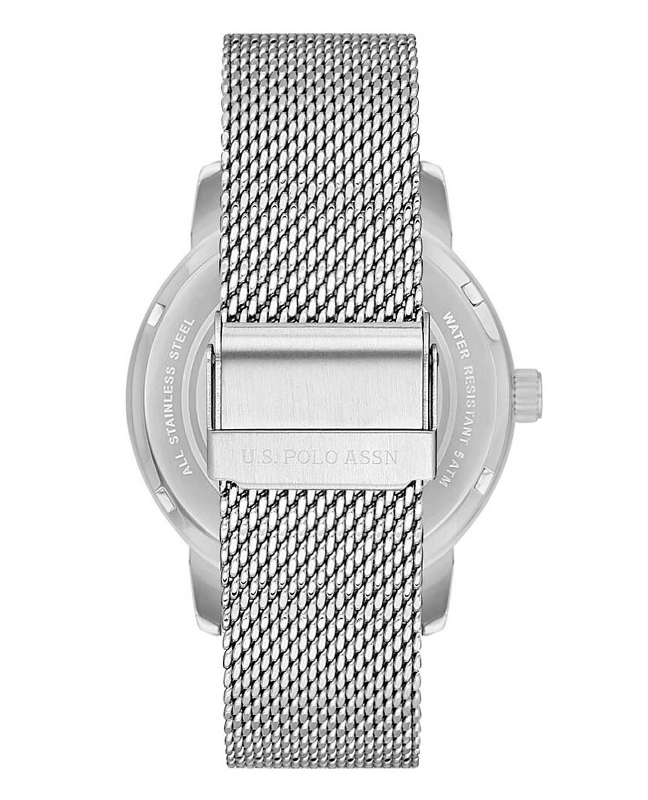 Мужские часы с тахиметромТахиметрРазмеченная шкала, располагается на ободке или безеле часов. Тахиметр позволяет рассчитать скорость на определённом участке пути, расстояние измеряется в километрах или милях. U.S. Polo Assn Fundamental USPA1075-01, кварцевый механизм с высокой точностью. Минеральное стеклоМинеральное стеклоМинеральное стекло представляет собой искусственно выращенный минерал кварца. Такое стекло отличается особой устойчивостью к повреждениям и царапинам. Уступает по некоторым качествам сапфировому стеклу. устойчивое к появлению царапин, обладающее высокой прозрачностью. Корпус изготовлен из нержавеющей стали. Центральные часовая, минутная и секундная стрелки. 24-х часовой формат времени, окошко даты и дня недели вынесены на отдельный циферблат. Стрелки с люминесцентным покрытиемЛюминесцентное покрытиеПозволяет считывать показания времени в темноте. Производители наносят на стрелки, часовые индексы, безель или поверхность циферблата светонакопительный состав, дающий холодное свечение.. Класс водозащиты: 50 метров, позволит защитить корпус от случайных брызг или капель дождя. Стальной браслет миланского плетения на раскладном замкеРаскладной замокДанный вариант застежки используется только на часах с металлическим браслетом. Отличительная особенность такого крепления в том, что длина браслета становится универсальной и вы можете самостоятельно отрегулировать нужный вам размер – застежка просто двигается по браслету часов..