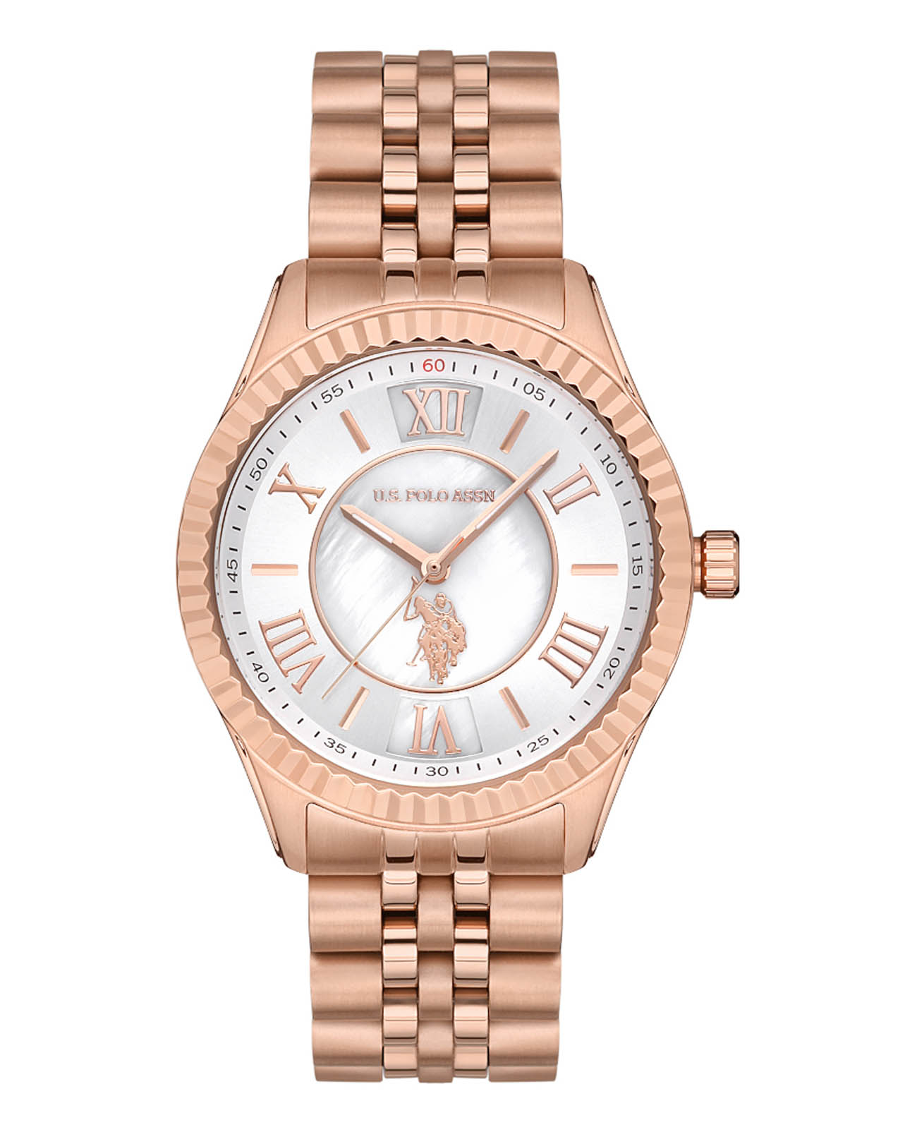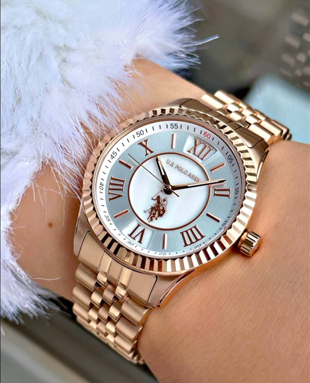 Женские часы U.S. Polo Assn Stile USPA2028-04, кварцевый механизм с высокой точностью. Минеральное стеклоМинеральное стеклоМинеральное стекло представляет собой искусственно выращенный минерал кварца. Такое стекло отличается особой устойчивостью к повреждениям и царапинам. Уступает по некоторым качествам сапфировому стеклу. устойчивое к появлению царапин, обладающее высокой прозрачностью. Корпус часов изготовлен из нержавеющей стали с IP-покрытиемIP-покрытиеМетод ионного напыления. Демонстрирует повышенную устойчивость к истиранию, окислению и химическим веществам. Под воздействием высокого давления и температуры около 1500°C молекулы металла надёжно соединяются с частицами корпуса часов.. Стрелки с люминесцентным покрытиемЛюминесцентное покрытиеПозволяет считывать показания времени в темноте. Производители наносят на стрелки, часовые индексы, безель или поверхность циферблата светонакопительный состав, дающий холодное свечение.. Класс водозащиты: 50 метров, позволит защитить корпус от случайных брызг или капель дождя. Стальной браслет с IP-покрытиемIP-покрытиеМетод ионного напыления. Демонстрирует повышенную устойчивость к истиранию, окислению и химическим веществам. Под воздействием высокого давления и температуры около 1500°C молекулы металла надёжно соединяются с частицами корпуса часов. на раскладной застёжкеРаскладная застёжкаТакой тип застёжки используется только на браслетах из металла. Она никогда не раскрывается полностью, происходит разделение на 2 и более частей. Раскладывающая застёжка снизит вероятность потери часов к минимуму..