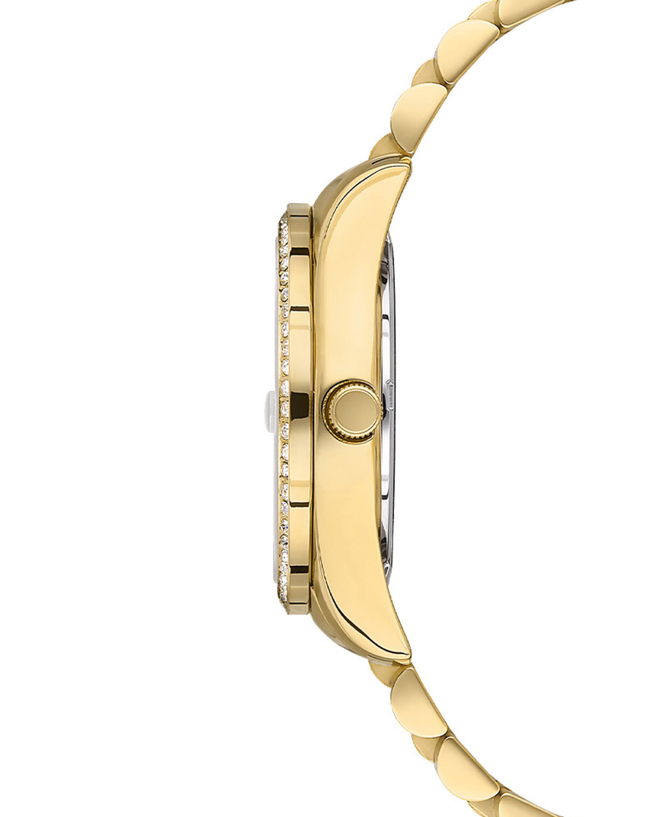 Женские часы U.S. Polo Assn Stile USPA2054-03, кварцевый механизм с высокой точностью. Минеральное стеклоМинеральное стеклоМинеральное стекло представляет собой искусственно выращенный минерал кварца. Такое стекло отличается особой устойчивостью к повреждениям и царапинам. Уступает по некоторым качествам сапфировому стеклу. устойчивое к появлению царапин, обладающее высокой прозрачностью. Корпус изготовлен из нержавеющей стали с IP-покрытиемIP-покрытиеМетод ионного напыления. Демонстрирует повышенную устойчивость к истиранию, окислению и химическим веществам. Под воздействием высокого давления и температуры около 1500°C молекулы металла надёжно соединяются с частицами корпуса часов.. БезельБезельВнешний ободок, закрепляющий стекло. В спортивных часах так называется поворотное кольцо с делениями на циферблате, выполняет роль таймера – замеряет отрезки времени на шкале. Неподвижный безель – элемент декора. Однонаправленно вращающийся безель на дайверских часах позволяет фиксировать моменты погружения и выныривания на поверхность. украшен кристаллами. Окошко даты находится в положении 3 часа. Класс водозащиты: 30 метров, позволит защитить корпус от случайных брызг или капель дождя. Стальной браслет с IP-покрытиемIP-покрытиеМетод ионного напыления. Демонстрирует повышенную устойчивость к истиранию, окислению и химическим веществам. Под воздействием высокого давления и температуры около 1500°C молекулы металла надёжно соединяются с частицами корпуса часов. на застёжке-бабочке с кнопкамиЗастёжка "бабочка"Такой вид застёжки дополняется предохранителями, помогающими избежать случайного раскрытия браслета. Обладают изящным исполнением. .