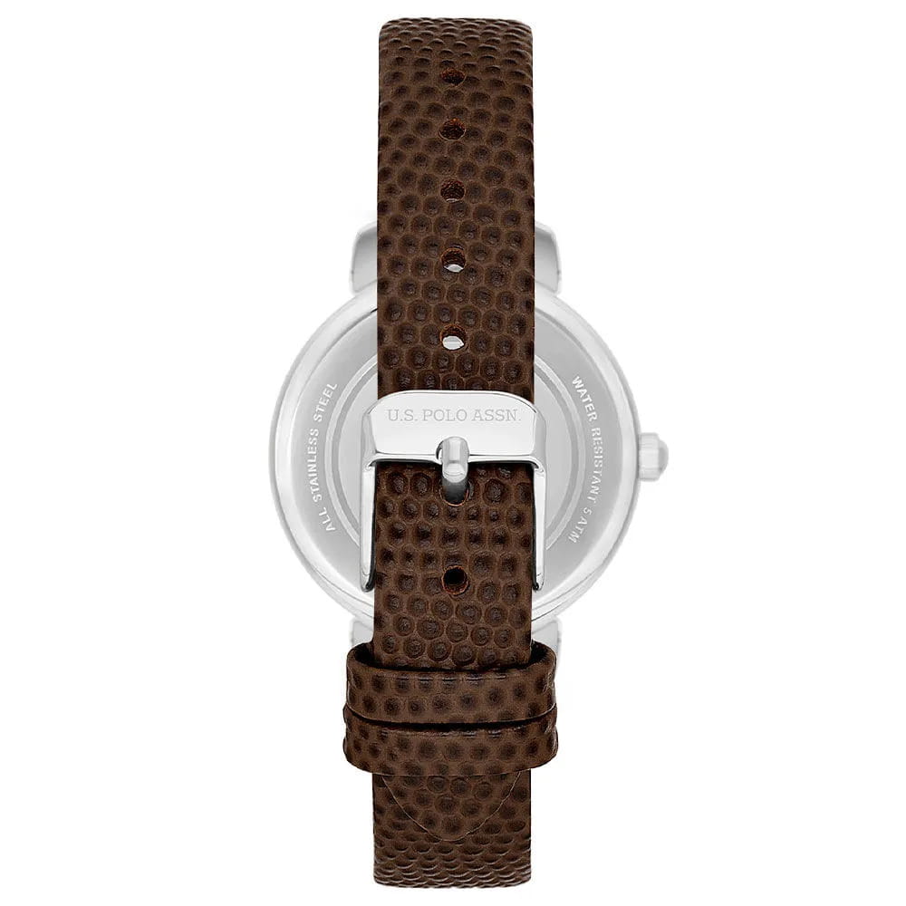 Женские элегантные часы U.S. Polo Assn. Stile USPA2077-02, кварцевый механизм с высокой точностью. Минеральное стеклоМинеральное стеклоМинеральное стекло представляет собой искусственно выращенный минерал кварца. Такое стекло отличается особой устойчивостью к повреждениям и царапинам. Уступает по некоторым качествам сапфировому стеклу. устойчивое к появлению царапин, обладающее высокой прозрачностью. Изысканный корпус изготовлен из нержавеющей стали. Лаконичные серебристые центральные часовая, минутная и секундная стрелки. Класс водозащиты: 50 метров, позволит защитить корпус от случайных брызг или капель дождя. Кожаный ремень со стандартной застежкой обеспечивает комфорт и удобство в использовании, добавляя завершающий штрих к этому стильному аксессуару. Циферблат подчёркивает изысканный характер часов, создавая универсальный образ, подходящий как для повседневных ситуаций, так и для особых случаев.