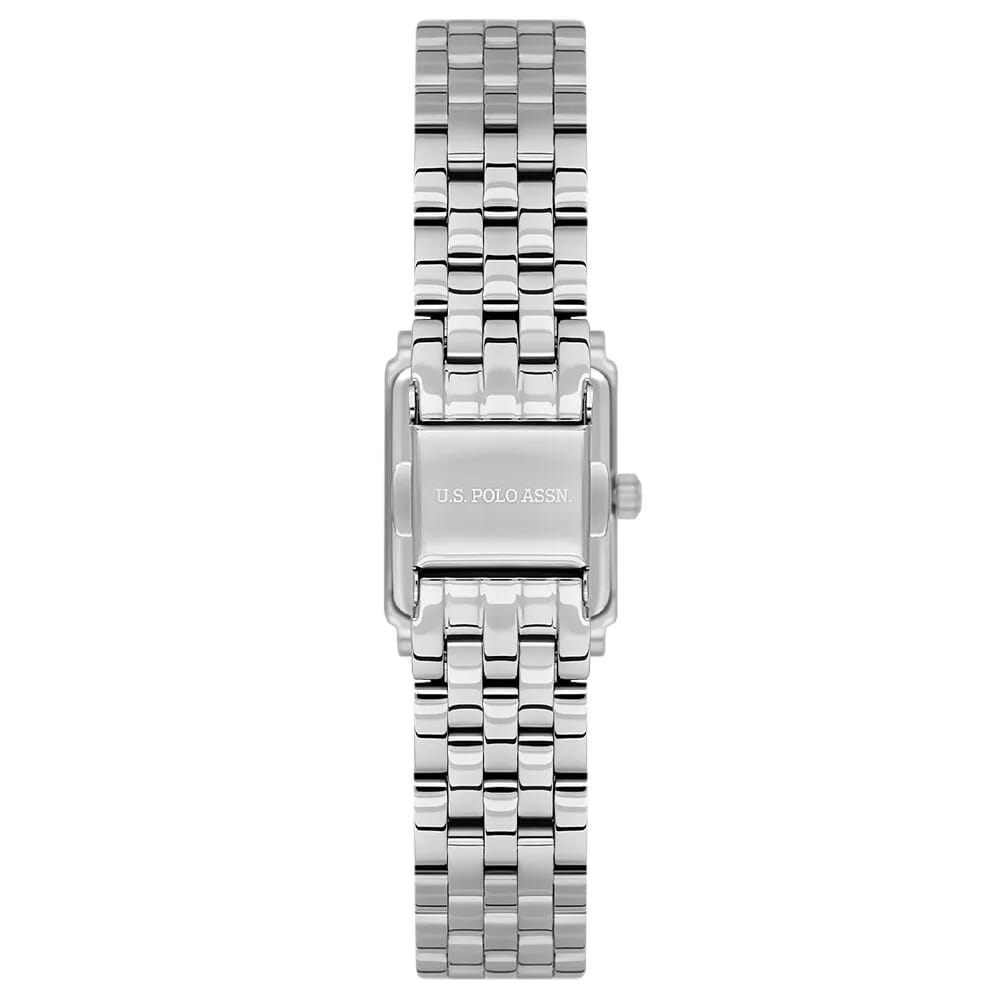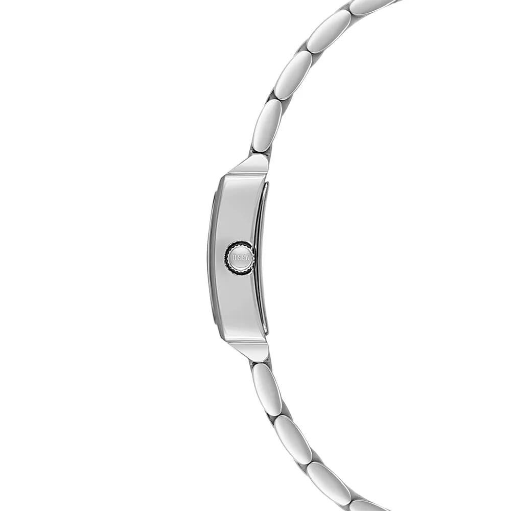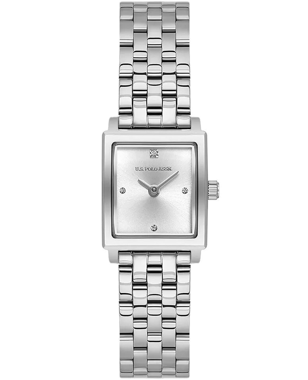 Женские наручные часы U.S. Polo Assn. Stile USPA2107-01 — это стильный и лаконичный аксессуар, выполненный в форме квадрата. Модель изготовлена из стали серебристого цвета, придающий благородный внешний вид и устойчивость к царапинам. Циферблат с кристаллами дополнен лаконичными центральными часовой и минутной стрелками. Защиту циферблата обеспечивает минеральное стеклоМинеральное стеклоМинеральное стекло представляет собой искусственно выращенный минерал кварца. Такое стекло отличается особой устойчивостью к повреждениям и царапинам. Уступает по некоторым качествам сапфировому стеклу., устойчивое к мелким повреждениям. Часы оснащены кварцевым механизмом, гарантирующим точность и минимальное обслуживание. Водонепроницаемость 3 АТМ позволяет использовать часы в повседневных условиях — при мытье рук или под лёгким дождём. Браслет выполнен из стали и оснащён раскладной застёжкойРаскладная застёжкаТакой тип застёжки используется только на браслетах из металла. Она никогда не раскрывается полностью, происходит разделение на 2 и более частей. Раскладывающая застёжка снизит вероятность потери часов к минимуму., обеспечивающей комфорт и уверенную фиксацию на запястье. Толщина корпуса составляет 7 мм, а его размер 19 мм, что делает часы компактными и удобными в носке. Эти часы станут универсальным аксессуаром для уверенных в себе женщин, которые ценят сочетание стиля, качества и эстетики — идеальный выбор для повседневного образа и торжественных случаев.