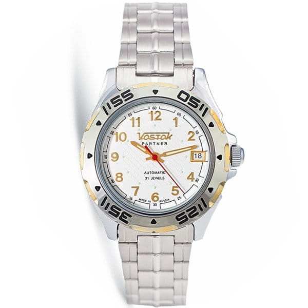 Элегантные часы идеально подходят для повседневного ношения и будут актуальны в любой обстановке. Партнер. В механизме 31 камень, частота 19800 полуколебаний в час. Запас хода 31 час. Противоударное устройство оси баланса. Заводная головка с защитой. Браслет с раскладывающейся застежкой. Застежка с системой блокировки.