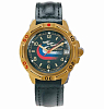 Командирские 439260 - классические наручные мужские часы бренда Восток. Корпус часов  выполнен из высокопрочной стали с полным золотым покрытием корпуса, минеральное стекло, устойчивое к царапинам. Черный циферблат часов украшен командирской символикой. Часы прочно удерживаются на руке ремешком из натуральной кожи. Пружинный механизм.