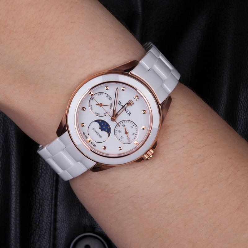 Wainer WA.18040-D – элегантные женские швейцарские часы, сочетающие изысканный стиль и высококачественные материалы. Корпус и браслет выполнен из нержавеющей стали 316L с PVD-покрытиемPVDУльтратонкое покрытие наносится в технике вакуумного напыления, сочетает в себе нитрид титана особой прочности со слоем золота или оксида хрома. Несёт в себе декоративную или защитную функцию., обеспечивающей прочность и долговечность. Сапфировое стеклоСапфировое стеклоПрочный и надёжный материал из кристалла сапфира синтетического происхождения, характеризующийся особой твёрдостью и устойчивостью к царапинам и повреждениям. с кристально чистым покрытием защищает циферблат от царапин и гарантирует идеальную прозрачность. БезельБезельВнешний ободок, закрепляющий стекло. В спортивных часах так называется поворотное кольцо с делениями на циферблате, выполняет роль таймера – замеряет отрезки времени на шкале. Неподвижный безель – элемент декора. Однонаправленно вращающийся безель на дайверских часах позволяет фиксировать моменты погружения и выныривания на поверхность. с PVD-покрытиемPVDУльтратонкое покрытие наносится в технике вакуумного напыления, сочетает в себе нитрид титана особой прочности со слоем золота или оксида хрома. Несёт в себе декоративную или защитную функцию.. Функциональность дополняется индикатором даты для удобства. Водонепроницаемость 50 метров делает модель подходящей для повседневного ношения и лёгких водных активностей.