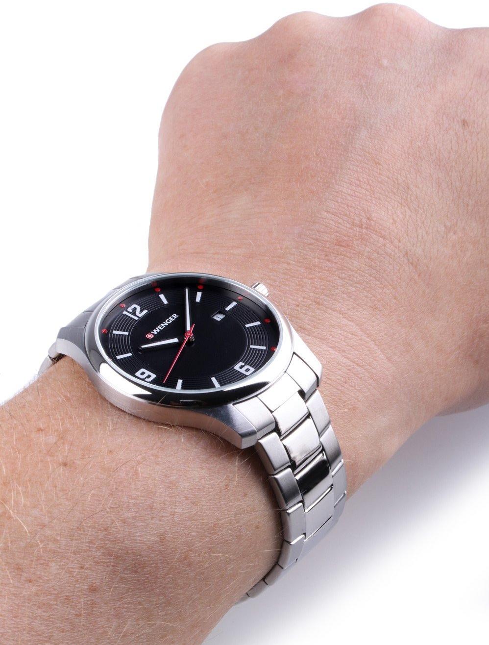 Мужские швейцарские часы на силиконовом ремешке Wenger City Active 01.1441.110, кварцевый механизм с высокой точностью. Класс водозащиты: 30 метров, позволит защитить корпус от случайных брызг или капель дождя. Корпус часов изготовлен из стали, цвета.