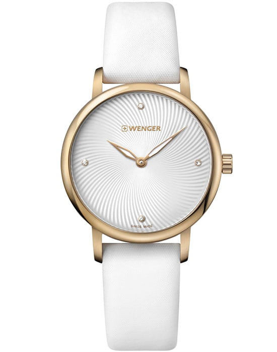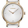 Женские швейцарские часы со стразами Wenger 01.1721.101, кварцевый механизм с высокой точностью. Класс водозащиты: 100 метров, позволит плавать, нырять и заниматься другими водными видами спорта. Корпус часов изготовлен из стали, золотистого цвета.