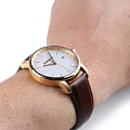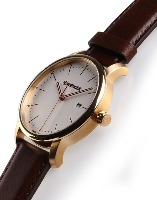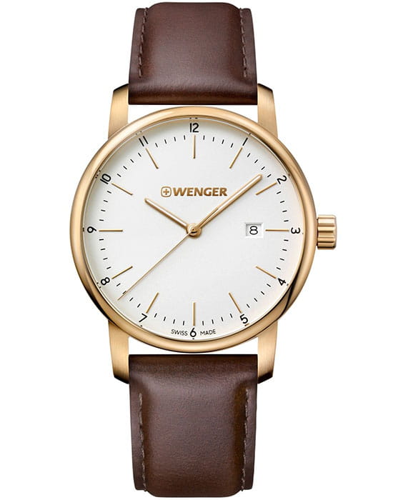 Швейцарские мужские часы в классическом стиле Wenger 01.1741.108, кварцевый механизм с высокой точностью. Класс водозащиты: 100 метров, позволит плавать, нырять и заниматься другими водными видами спорта. Корпус часов изготовлен из стали, золотистого цвета.