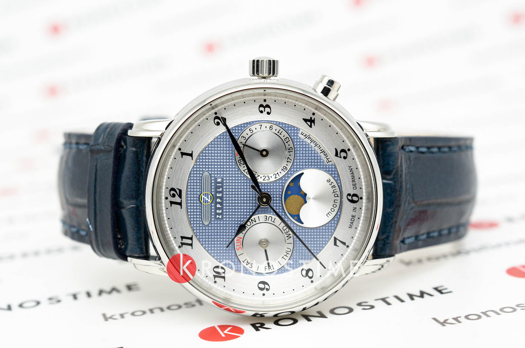Часы Zeppelin 8537-3 — это элегантные женские часы, идеально подходящие для женщин, ценящих классику и функциональность. Корпус из нержавеющей стали серебристого цвета идеально сочетается с синим циферблатом, украшенным гильошированным узором Парижа. Часы оснащены точным кварцевым механизмом Ronda 706.1 и индикатором фазы луны, что придает им неповторимый характер. Циферблат защищен закаленным минеральным стекломМинеральное стеклоМинеральное стекло представляет собой искусственно выращенный минерал кварца. Такое стекло отличается особой устойчивостью к повреждениям и царапинам. Уступает по некоторым качествам сапфировому стеклу., а темно-синий кожаный ремешок придает им элегантности. Кроме того, водонепроницаемость часов составляет 50 метров, так что вы можете спокойно принимать в них душ. Эти часы подойдут для повседневного ношения и станут ярким акцентом в вашем наряде.